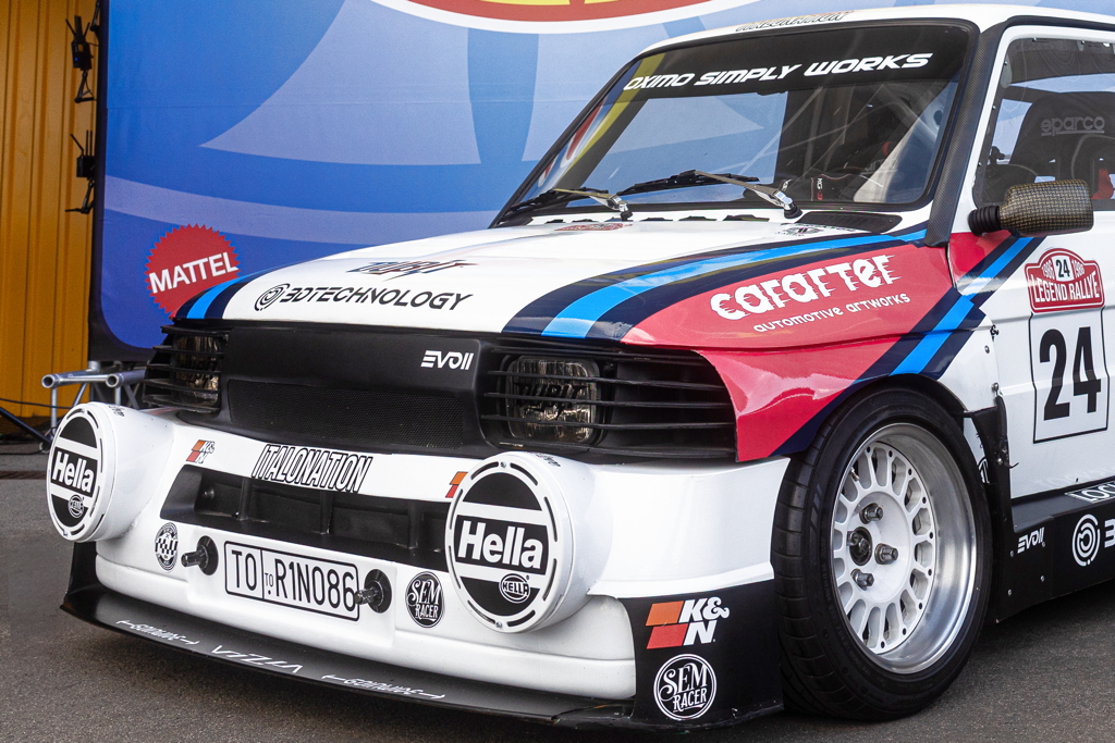 Cette Fiat rend hommage aux voitures de rallye des années 1980, avec une conception axée sur les performances. Sous des traits plutôt humbles, elle cache un puissant moteur. Emprunté à un Fiat Uno, ce 4-cylindres de 1,4 L a vu sa puissance doublée pour atteindre 200 ch, notamment grâce à l’implantation d’un turbocompresseur d’une Nissan 200SX GT28.