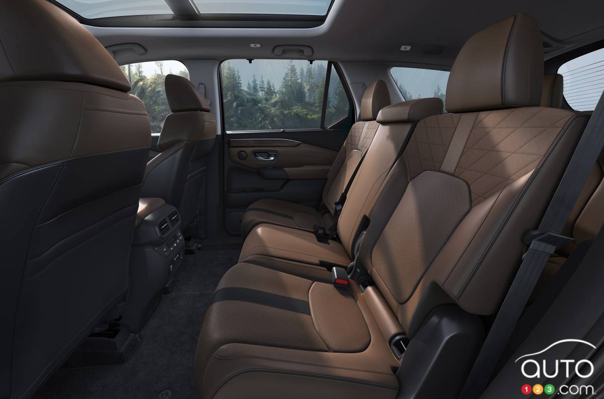 L’aspect familial demeure au cœur du Pilot : ses trois rangées peuvent accueillir jusqu’à huit occupants. Selon Honda, les matériaux utilisés sont aussi plus agréables au toucher.