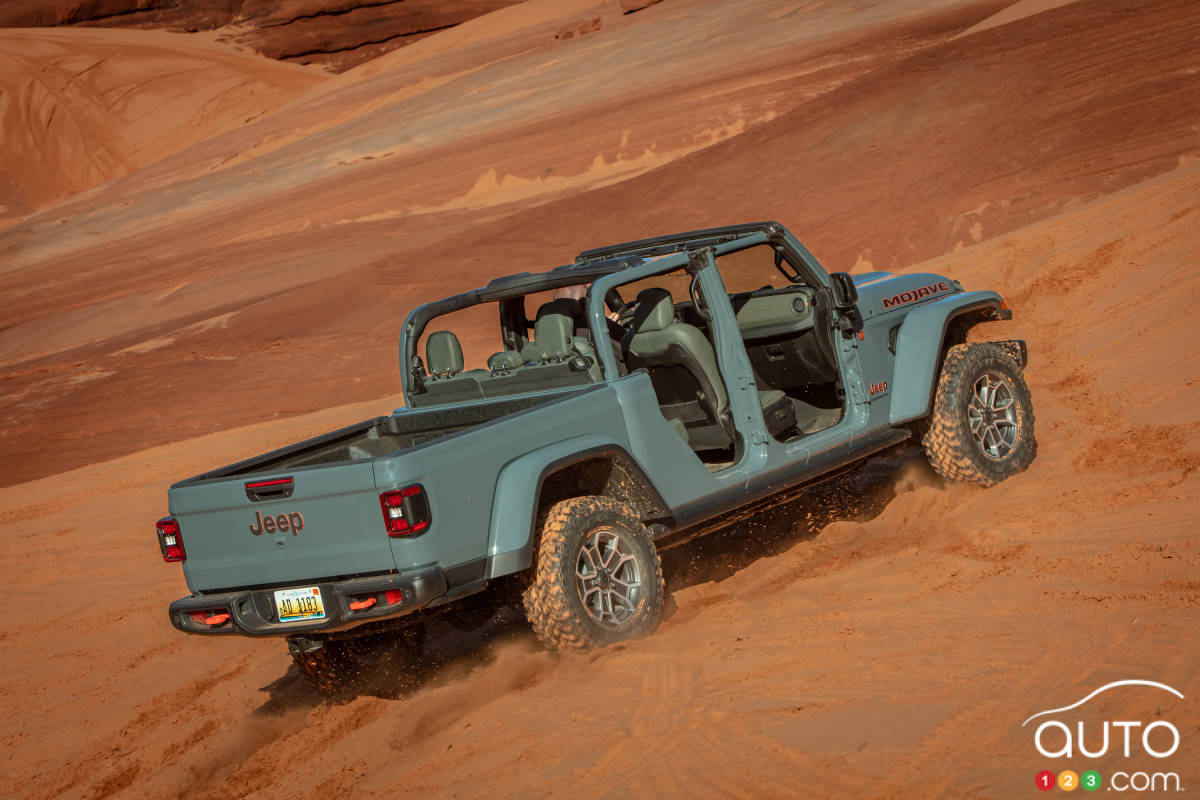 Parmi les autres nouveautés pour l’année-modèle, mentionnons que le Gladiator est doté de charnières améliorées qui permettent de retirer les portières plus facilement et plus rapidement.