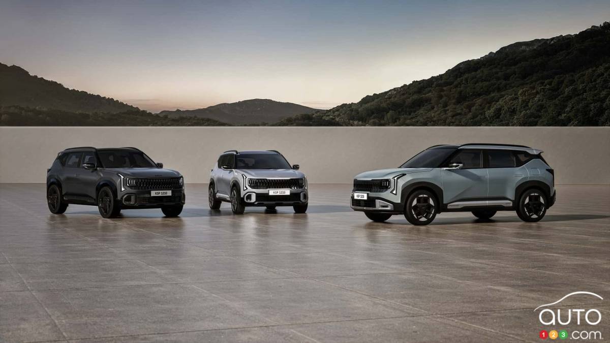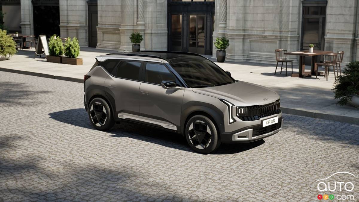 Selon Kia, l’espace intérieur progresse, bien que les cotes nord-américaines ne soient pas finalisées. Les sièges arrière peuvent s’incliner jusqu’à 12 degrés, le siège conducteur offre un mode « relaxation » et un toit ouvrant panoramique sera proposé. Des chaînes audio Harman Kardon ou Bose figurent également sur la liste.
