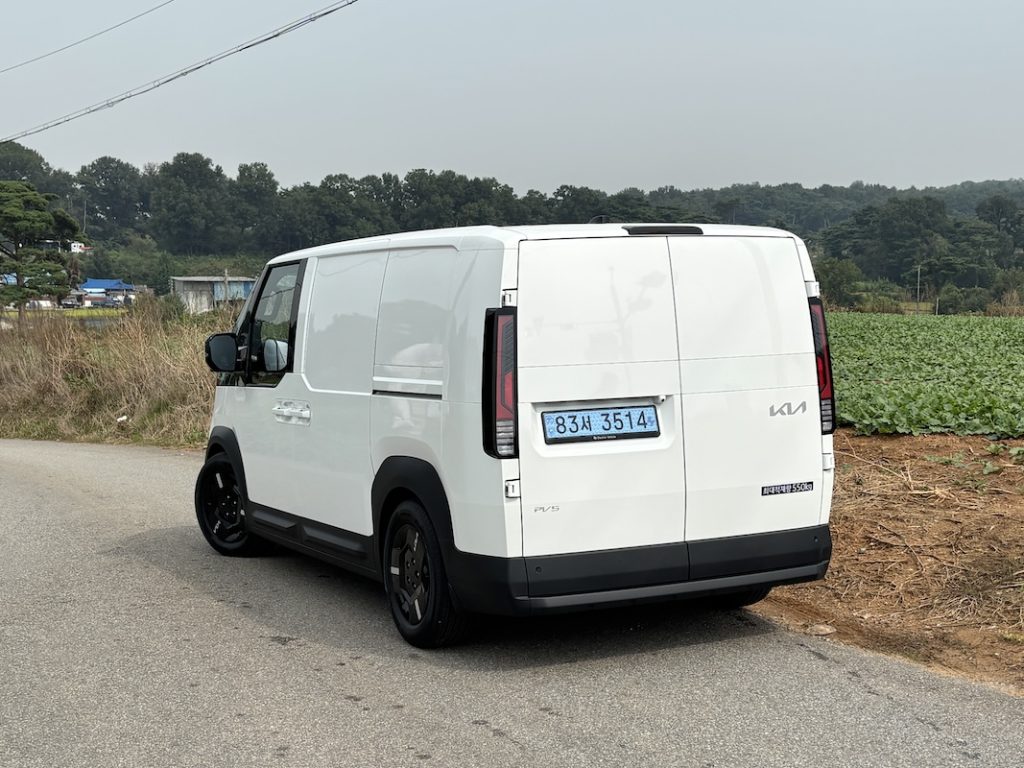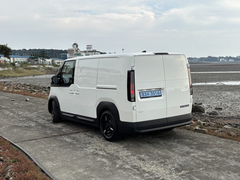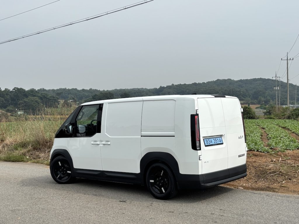 Sous ce design cubique se cache une batterie de 71,2 kWh. Le moteur n’est pas un foudre de guerre , mais offre tout de même 161 chevaux qui passent par les roues avant seulement et 184 lb-pi de couple. L’autonomie en chiffre WLTP est annoncée à 417 km. Ce qui veut dire environ 355 km en mode EPA. Notre journée d’essai en Corée du Sud permet de vous dire que dans des conditions de conduite urbaine, il sera possible d’approché les 400 km. Kia annonce une recharge de 10 à 80 % en 30 minutes. L’espace cargo permet d’accueillir deux palettes de chargement avec une charge utile de 690 kilos. Ce n’est pas une fusée, mais le couple instantané électrique fait merveille dans la circulation urbaine. Le PV5 part en silence, sans odeur de diesel ni vibration, un vrai soulagement pour les livreurs qui en ont marre de hurler sur leurs transmissions manuelles.