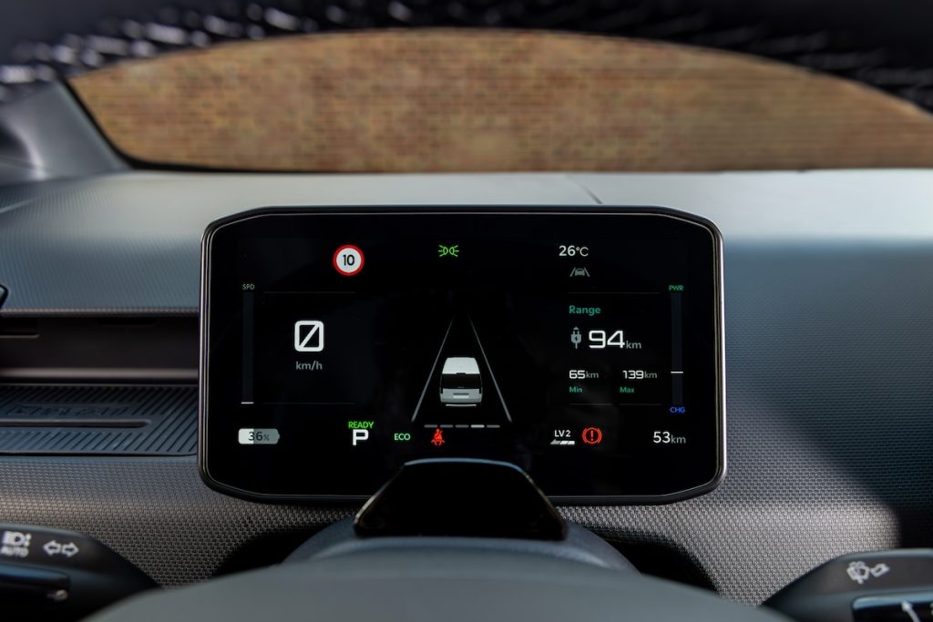 Sur la route, le PV5 surprend par sa douceur. La direction est légère, la visibilité excellente grâce à la ceinture de caisse abaissée, et le rayon de braquage bien plus serré qu’il ne le laisse croire. L’espace vitrée est immense et les vitres tant du coté passager que le conducteur ne se baissent pas complètement. En mode régénératif, la décélération douce aide à récupérer quelques kilomètres — un peu comme si le fourgon méditait sur chaque freinage. Les sièges sont confortables et la caisse n’a montrée aucun bruit de vibration.