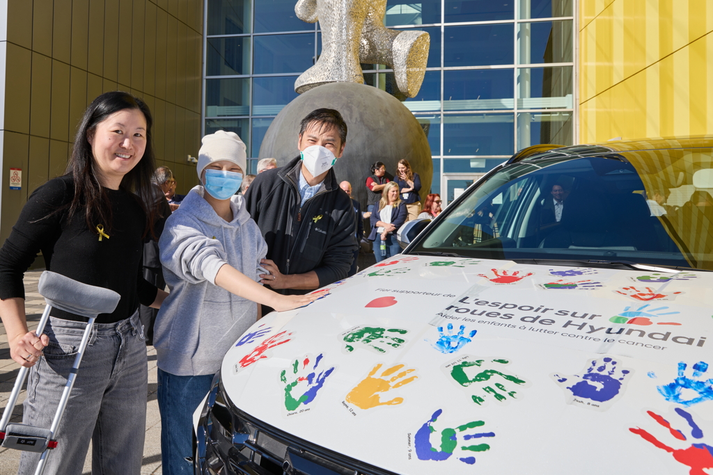 Le don a été remis par Steve Flamand, président et chef de la direction de Hyundai Auto Canada Corp., et Roger Desautels III, président de Hyundai St-Laurent, à Renée Vézina, présidente de La Fondation de l’Hôpital de Montréal pour enfants, qui était accompagnée d’Emmy, la jeune ambassadrice des patients de l’hôpital, et du Dre Catherine Vézina, cheffe de la division d’hémato-oncologie de l’Hôpital de Montréal pour enfants. Des représentants de la fondation et de Hyundai Canada, de même que du personnel médical de l’hôpital étaient présents pour signifier leur soutien aux gens qui forment la première ligne dans cette bataille cruciale.