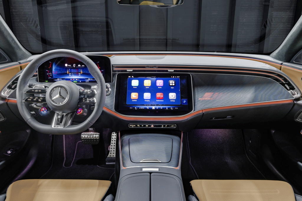 Jumelée à une transmission intégrale 4Matic+ Performance d’AMG, la motorisation transmet une puissance nette de 577 ch et 553 lb-pi de couple aux quatre roues. En outre, en s’offrant l’ensemble « Dynamique plus AMG », qui figure parmi les nombreuses options proposées pour cette voiture, l’acheteur de cette familiale verra la puissance bondir à 604 ch et la vitesse de pointe passer de 250 à 280 km/h. De plus, selon le constructeur, grâce à la fonction « Démarrage de course », que comprend cet ensemble, le temps d’accélération de 0 à 100 km/h chute de 4,1 à 3,9 s.