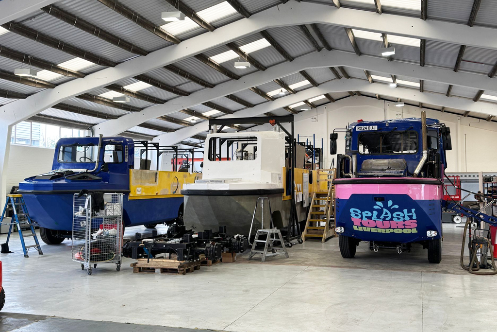 Conçu pour se déplacer sur terre et sur l’eau, ce véhicule peut accueillir 36 passagers et deux membres d’équipage. Conforme aux normes de sécurité maritime britanniques, sa batterie lui procure l’autonomie nécessaire pour une journée entière de service.