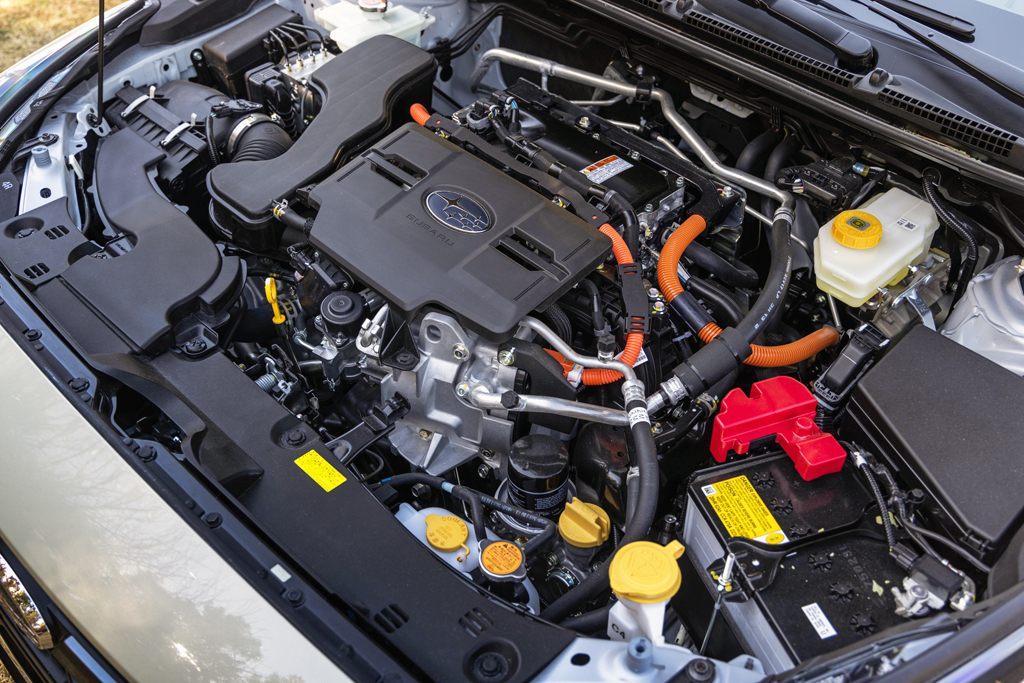 La Crosstrek hybride partage sa motorisation constituée d’un 4-cylindres à cycle Atkinson de 2,5 L jumelé à deux moteurs électriques (dont un moteur d’entraînement), qui sont alimentés par une batterie au lithium-ion de 1,1 kWh. Cette motorisation qui produit une puissance nette de 194 ch devient la plus puissante de la famille Crosstrek. Le constructeur lui attribue une consommation moyenne de 6,5 L/100 km.